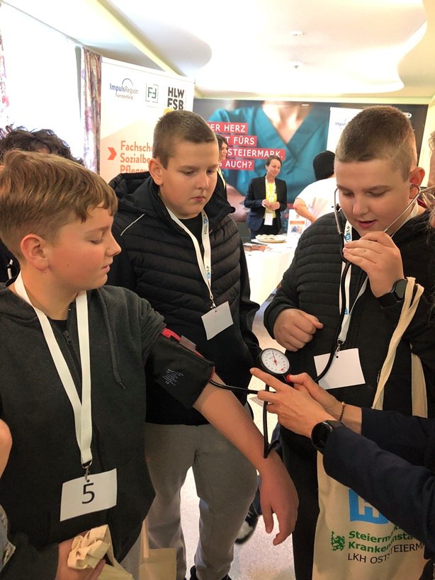 A különböző információs standokon – többek között a Bad Radkersburg-i Ápolóképző Iskola, a Bildungszentrum Süd, a Schloss Stein, az FSB Weiz, az FH Joanneum, az FSB Mureck és az LKH Oststeiermark képviselőinél – a fiatalok első kézből tájékozódhattak a továbbtanulási és karrierlehetőségekről ebben a jövőbiztos ágazatban.
