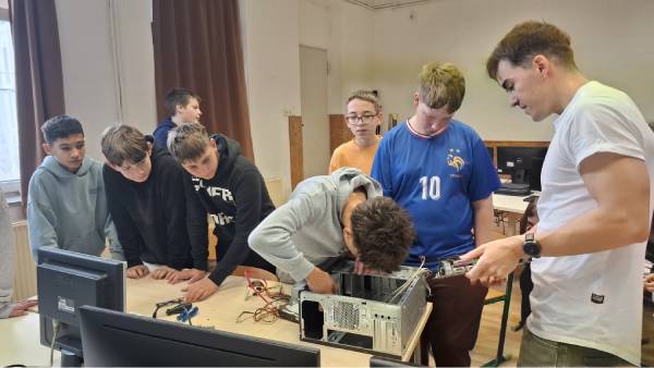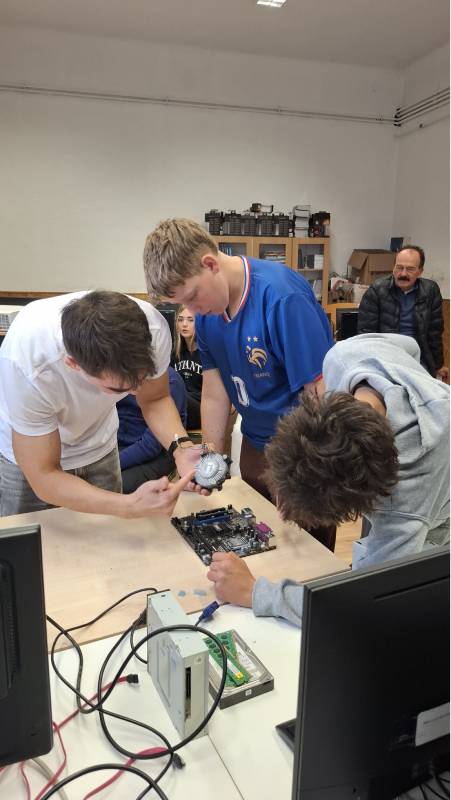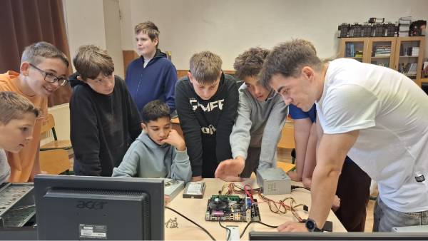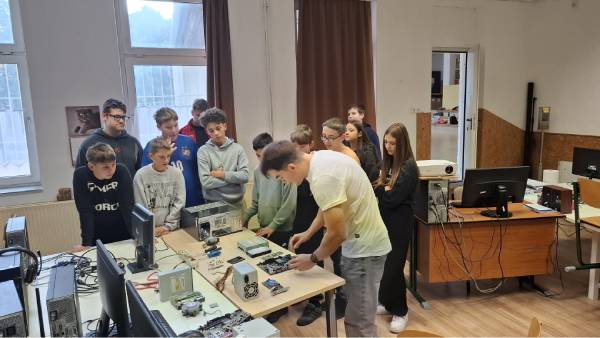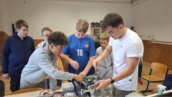 Igazán férfias foglalkozásokat találtunk a 6-7. évfolyamos fiúk számára. A nap második részében az informatika világába, a rendszergazdák munkakörébe nyertek bepillantást. Iskolánk rendszergazdája óriási lelkesedéssel beszélt munkájáról. Szavaiból kiérződött a szakmája iránti szeretet. Lelkesedése a fiúkra is átragadt, főleg amikor Tamás segítségével szétszedhettek és összerakhattak egy számítógépet. Munkájukat siker koronázta, hiszen több csoportban, háromszor is sikeresen építették össze működőképesre a számítógépet.