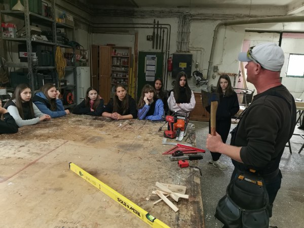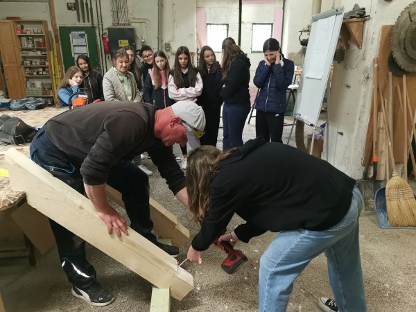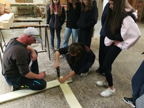 In der Werkstatt von Zimmerermeister Gergely Csizmazia zeigte sich einmal mehr, dass man ohne Mathematik im Handwerk nicht weit kommt. Berechnungen gehören zum Arbeitsalltag und sind unverzichtbar. Der Meister war beeindruckt, wie geschickt auch die Schülerinnen mit Bohrer und Hammer umgingen.