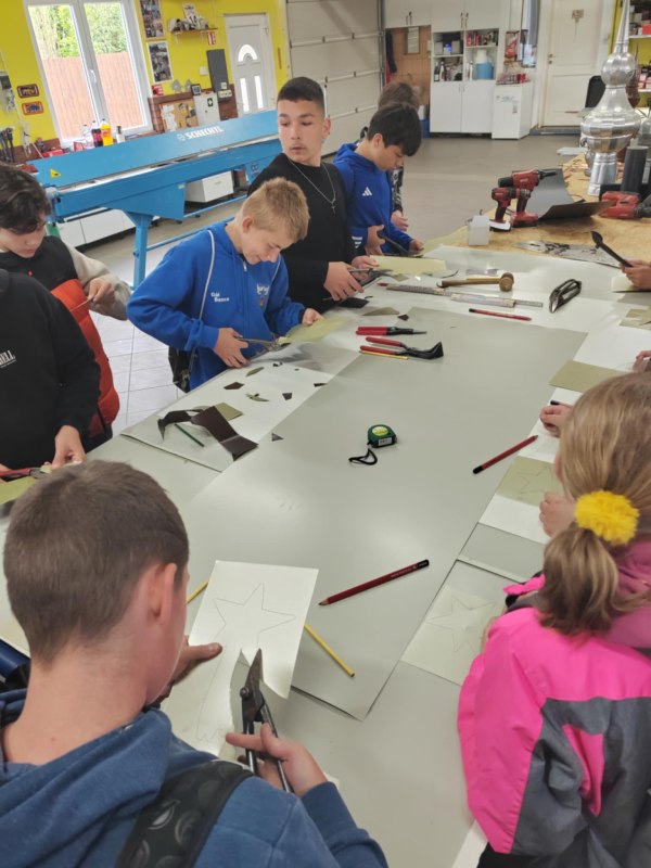 Bei Spenglermeister András Tesch lernten sie die für diesen Beruf erforderlichen Handwerkzeuge und Maschinen kennen. Außerdem durften sie selbst Hand anlegen und sich im Zuschneiden von Blech ausprobieren. Der Meister betonte, dass sich unter den Jugendlichen einige besonders talentierte Schüler und Schülerinnen befinden.