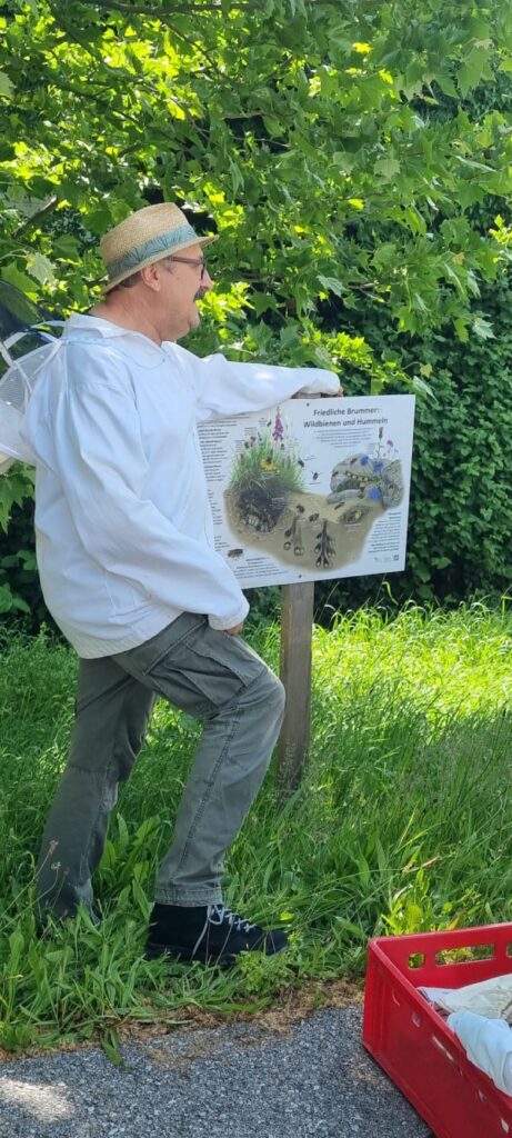 Anlässlich des Weltbienentags und im Rahmen des Bienen-Mai-Projekts unternahmen unsere Schülerinnen und Schüler der 2c einen besonderen Lehrausgang zum Bienenzuchtverein in Schattendorf. Der Besuch beim Obmann, Herrn Herbert Grafl, bot den Kindern die Gelegenheit, bereits angeeignetes Wissen im direkten Kontakt mit den Bienen zu erleben. Imker Herbert führte die Klasse durch den Bienenlehrpfad und erklärte anschaulich das Leben im Bienenstock. Besonders spannend war, dass die Schülerinnen und Schüler Bienenanzüge anziehen durften. Das direkte Beobachten der Bienen aus nächster Nähe und – für viele ein Highlight – das Halten einer Biene auf der Hand, sorgte für viel Begeisterung. Zum Abschluss durften alle leckere Honigbrote genießen – ein süßer Höhepunkt eines wirklich sehr lehrreichen Vormittags. Die vielen tollen Eindrücke werden sicher noch lange in Erinnerung bleiben.