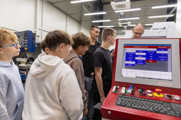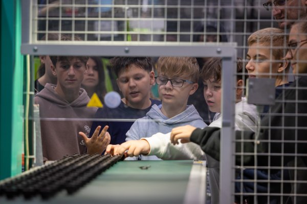 Sie sahen, wie aus Kunststoffgranulat durch Spritzguss einzelne Bauteile entstehen und wie diese später mit verschiedenen Metallverbindungen zu fertigen Einheiten zusammengesetzt werden. Auch das Lager und die Werkstatt konnten besichtigt werden. Dort beobachteten die Jugendlichen verschiedene Maschinen in Betrieb und erhielten einen Eindruck von den Arbeitsabläufen in der industriellen Fertigung.